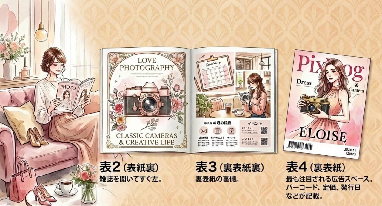 カメラ雑誌の表紙裏(表2)、裏表紙(表4)、裏表紙裏(表3)は最も高額な広告枠であり、これらの枠を押さえることはメーカーにとってのステータスでもあった。新製品のタイアップ記事(メーカーの協力のもとに制作される記事)も重要な収入源であった。