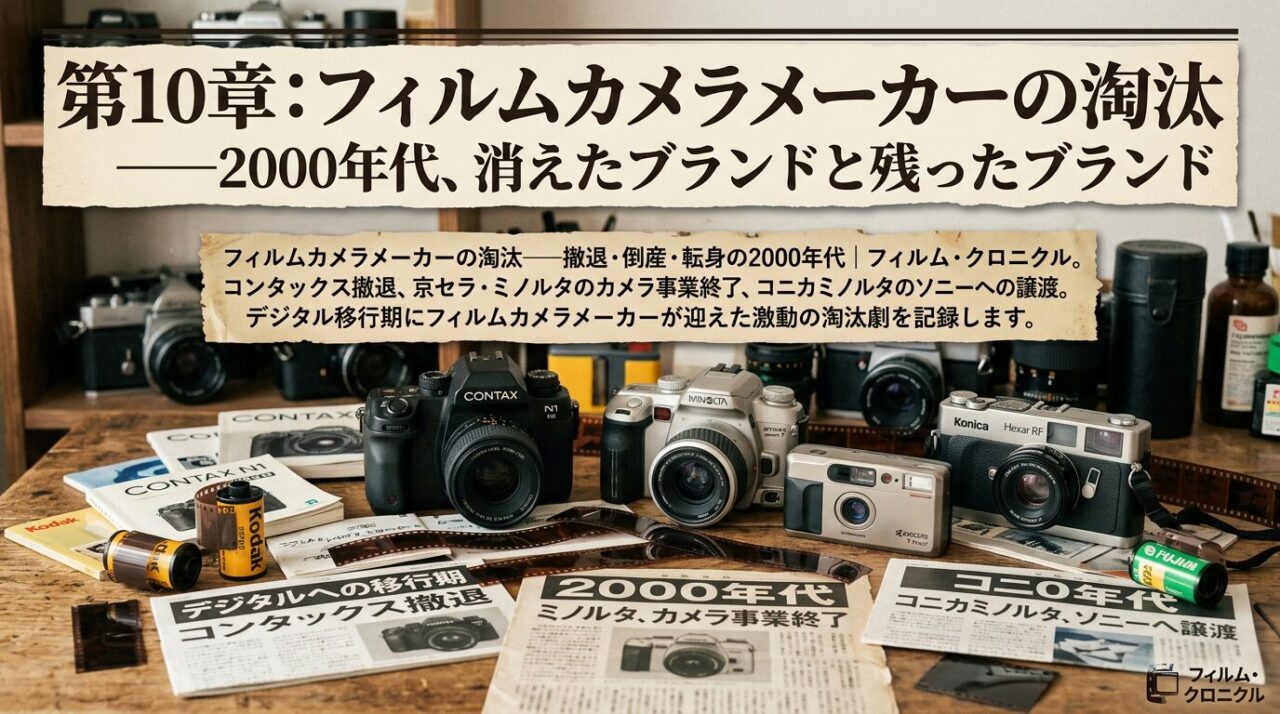 2000年代は、フィルムカメラメーカーにとって大量絶滅の時代だった。本章では、どのブランドが消え、どのブランドが残り、その分岐点はどこにあったのかを検証する。