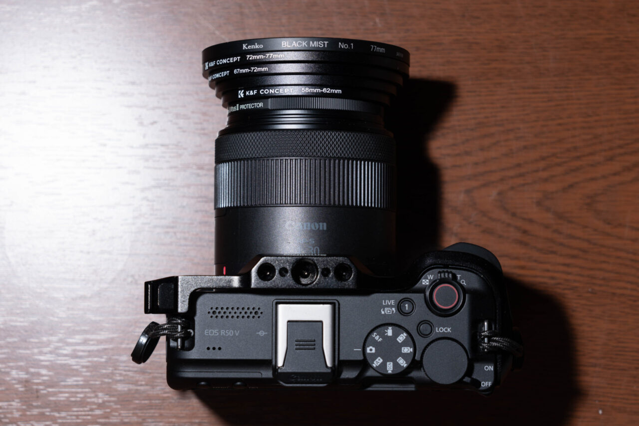 - 対策: なるべくリングの重ね付けは最小限にし、できるだけ「レンズより大きいフィルター」を使う(ステップアップ)ようにしましょう。