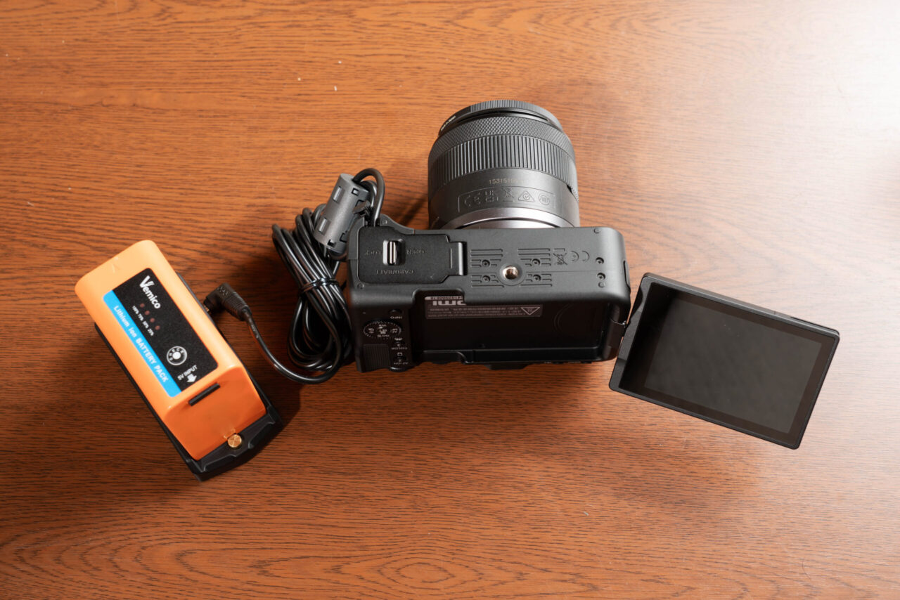 実践セットアップ例:Canon EOS R50V + NP-F互換バッテリー