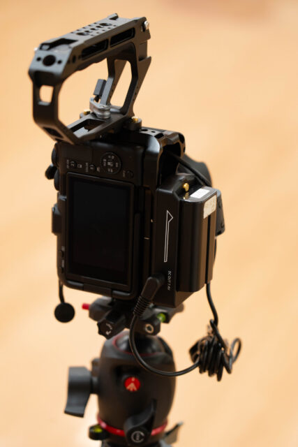 ここでは、Canon EOS R50Vに NP-Fバッテリーから給電する具体的な手順を示す。