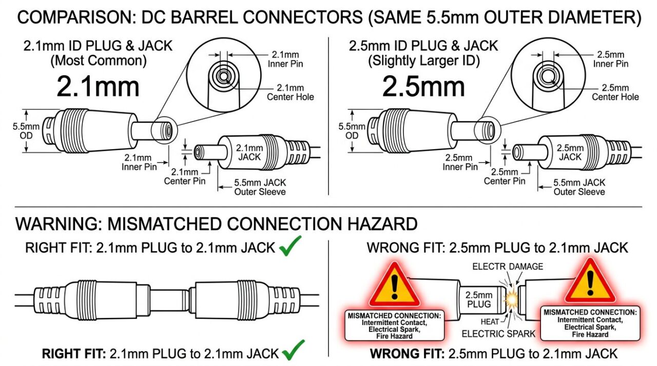 外見がほとんど同じため、間違えて接続してしまうことがある。5525のプラグは5521のジャックに差し込めてしまう場合があるが、接触不良を起こし、給電が不安定になるか、最悪の場合ショートの原因になる。購入時は必ずサイズを確認すること。