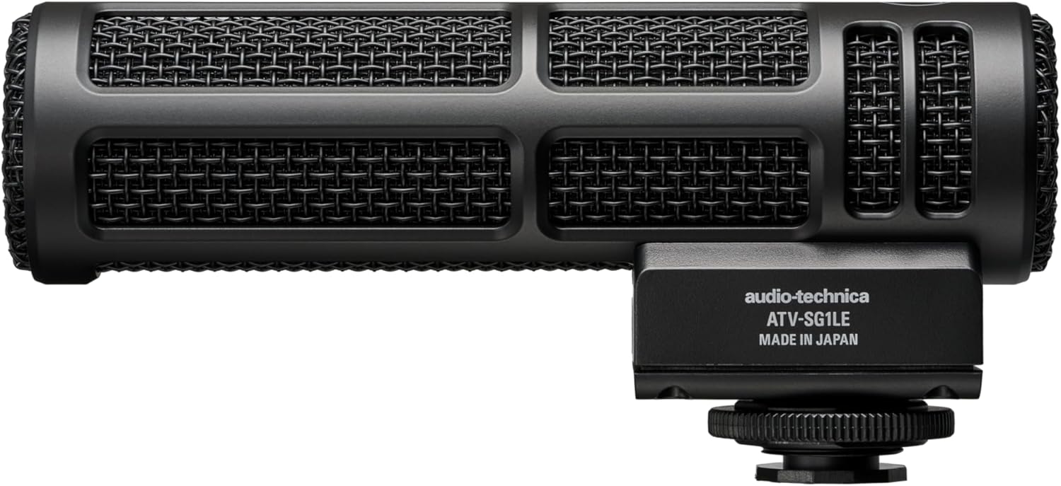 前述のATV-SG1LEの上位モデルであり、同じ14mm大口径ダイアフラム+100mm音響管をベースに、プロフェッショナル向けの機能を惜しみなく盛り込んだフラッグシップオンカメラマイクだ。2026年3月発売、日本設計・日本製造。