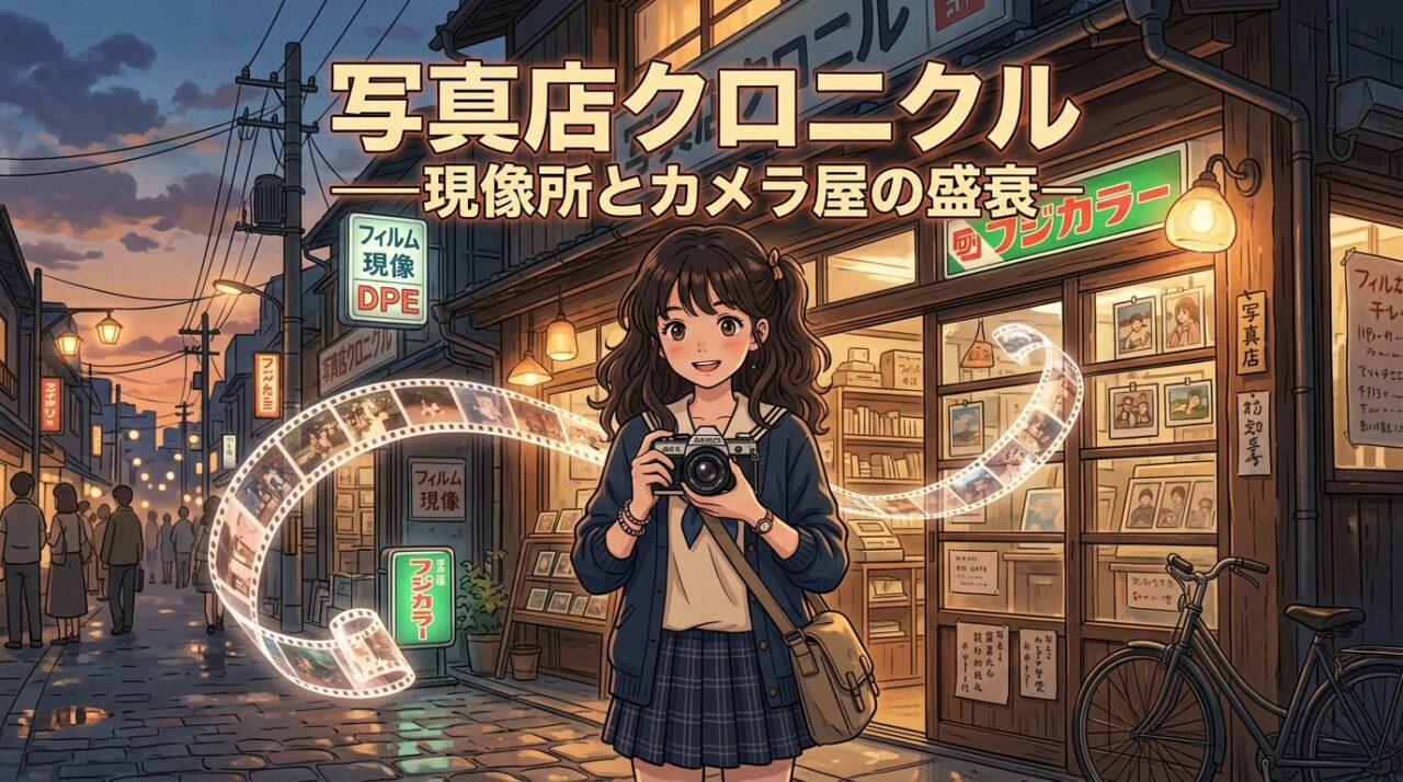 本稿では、写真店——すなわち現像所(ラボ)とカメラ小売店——の誕生から黄金時代、デジタル化による壊滅的縮小、そして2020年代の新しい息吹までを通史的に描く。フィルム・クロニクル本編が「フィルムそのもの」の歴史を追ったのに対し、本稿はフィルムを「受け取り、処理し、届ける」側——写真産業の”ラストワンマイル”に焦点を当てる。