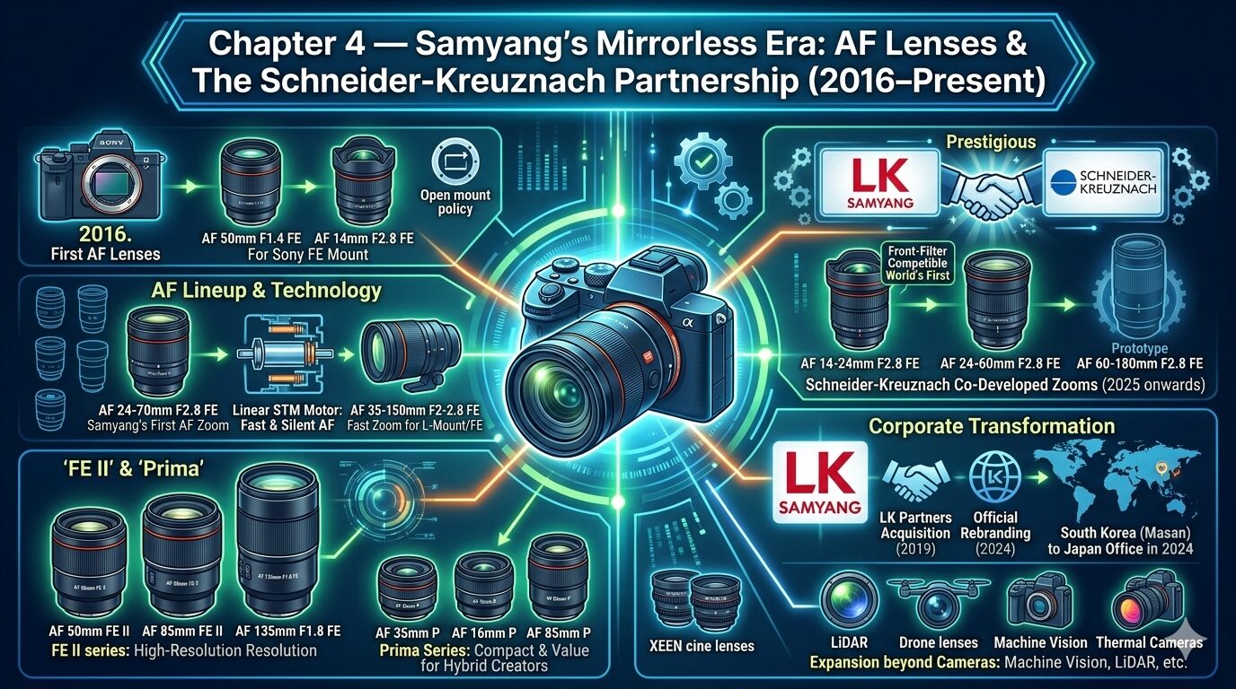 - Photo Rumors — Four new Schneider Kreuznach × LK Samyang AF lens prototypes at CP+ 2026(https://photorumors.com/2026/03/01/four-new-schneider-kreuznach-x-lk-samyang-af-lens-prototypes-20-50mm-f-2-28-85mm-f-2-200mm-f-1-8-and-300mm-f-4/)