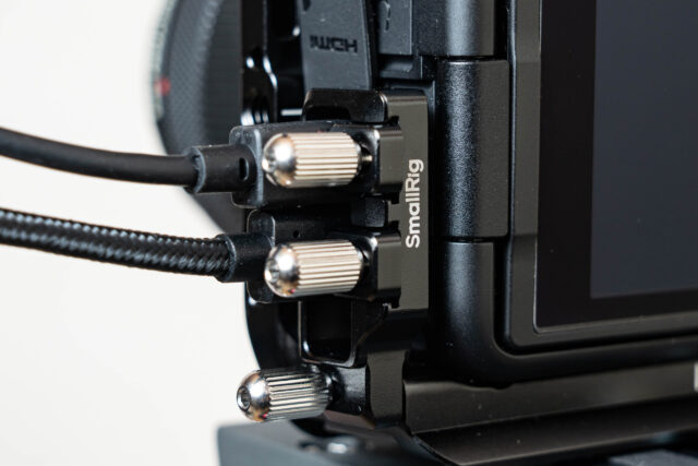 SmallRigの専用ケージはこれらすべての開口部を精密に確保しており、「ケージをつけたまま電池交換ができる」「ケージをつけたまま充電できる」という使い勝手が評価されている。