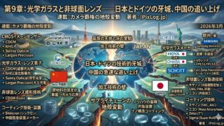 位相差AF・コントラストAF・ハイブリッドAFの原理から、AI被写体認識AF、レンズ内アクチュエータ(VCM・USM・STM)のサプライチェーン、中国AFレンズの急成長まで。日本メーカーの「最後の堀」の現在地を多角的に検証。