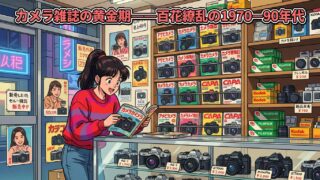 AF一眼レフの登場とフィルムの多様化が生んだカメラ雑誌の最盛期。CAPA(1981年)、月刊カメラマン(1978年)の創刊から、誌面戦争と広告市場のピークまでを描く。