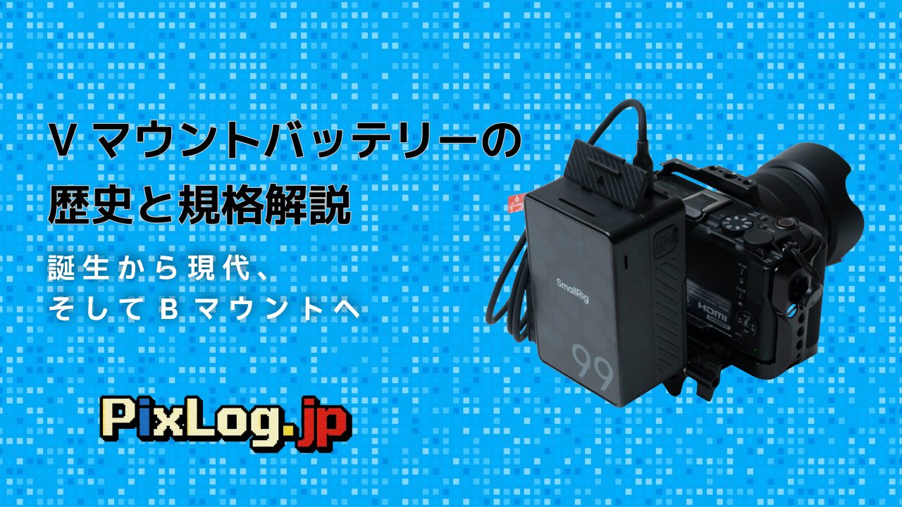 映像制作の現場で「Vマウント」という言葉を聞いたことがあるだろうか。業務用ビデオカメラの背面にカチッと装着される、あの大きなバッテリーのことだ。放送や映画の世界で30年以上にわたり使われ続けているこの規格には、技術革新と市場競争が絡み合った、思いのほか奥深い歴史がある。本稿ではVマウントバッテリーがなぜ生まれ、どのように進化し、そしてこれからどこへ向かうのかを整理する。