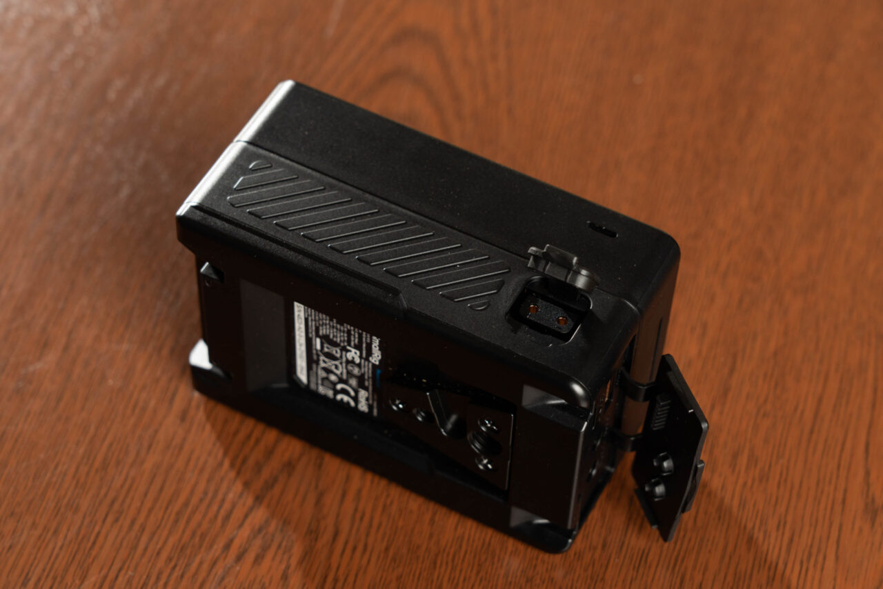 小型LEDパネル(30〜60W程度)であればD-Tap 1系統で十分に賄えるが、100W超のCOB LEDライト(Aputure 300d IIやNanlite Forza 300など)はD-Tapの電流容量を超える。こうした大型LEDライトは専用のVマウントプレート(2連装など)や、AC電源との併用が前提になる。